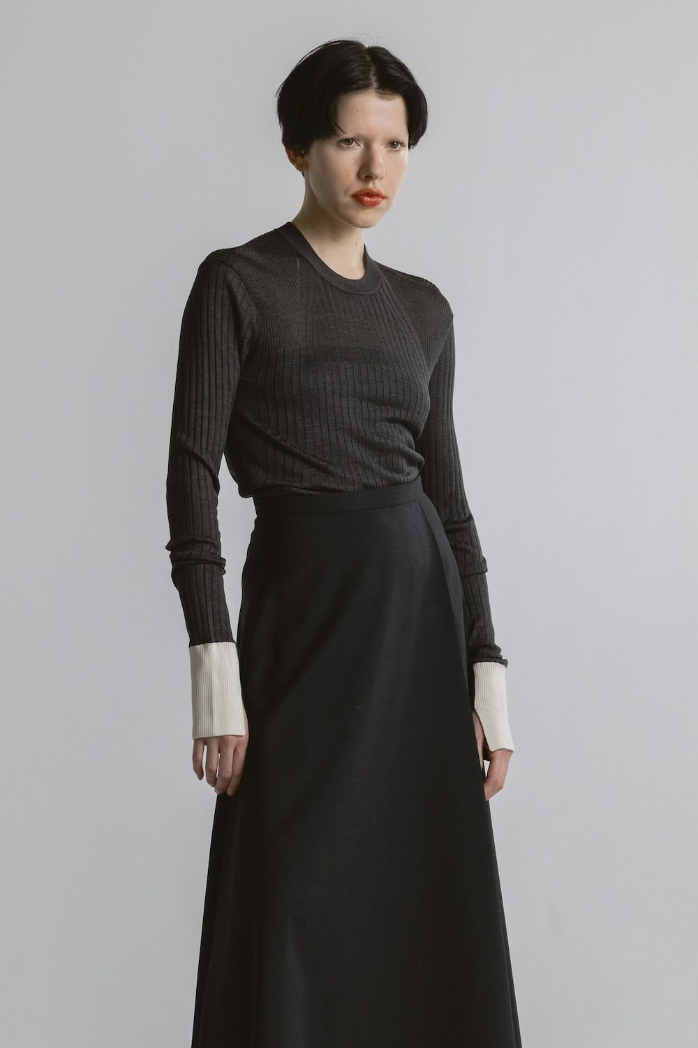 シルククルーネックタイトニット[C.GRAY/WHITE]