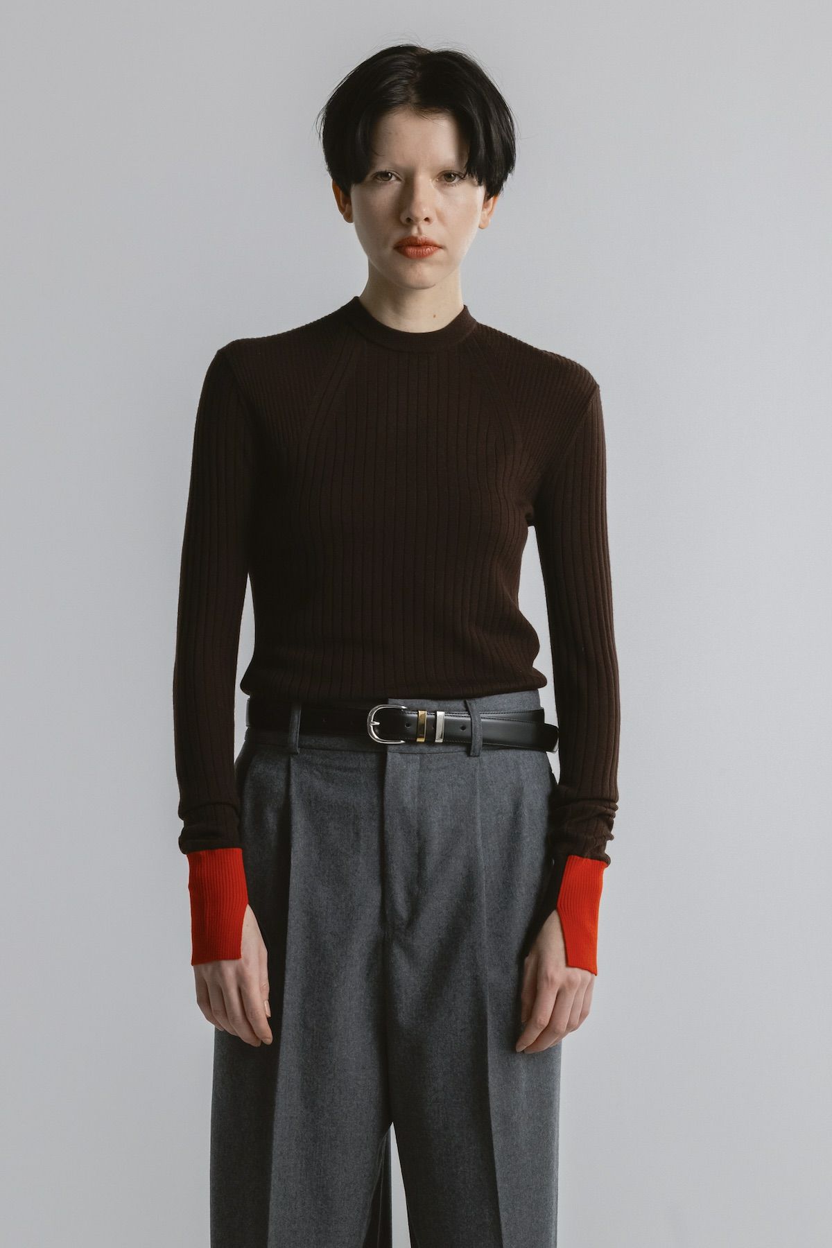 タートルネックタイトニット[TURQUOISE/BROWN]