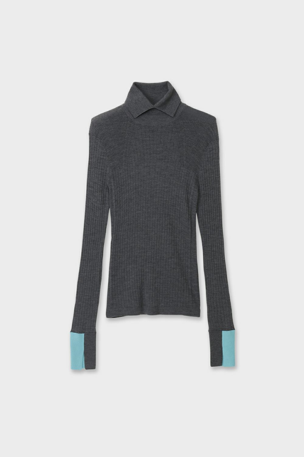 タートルネックタイトニット[C.GRAY/TURQUOISE]