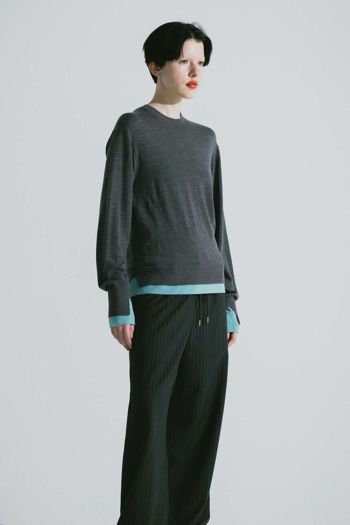 クルーネックタイトニット[C.GRAY/TURQUOISE]