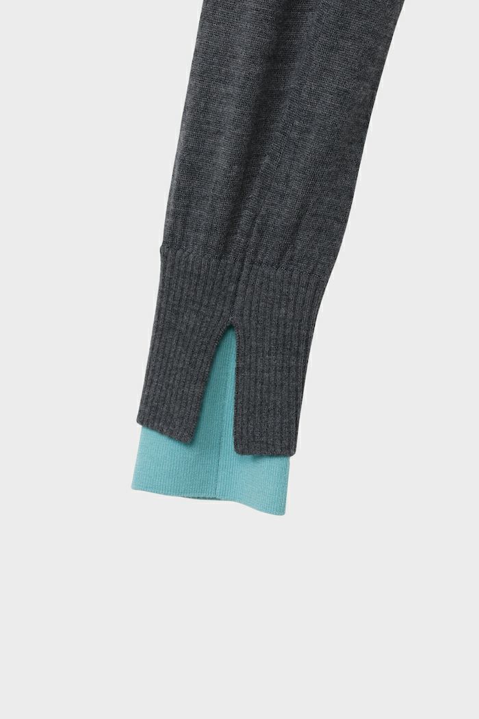 バイカラートリムニット[C.GRAY/TURQUOISE]