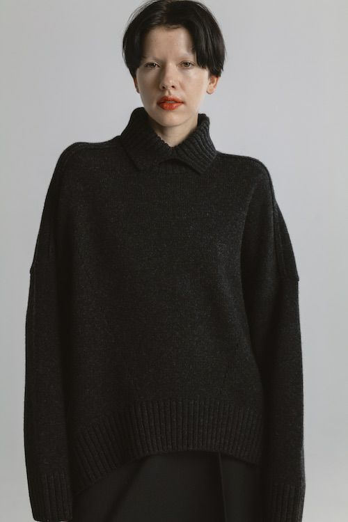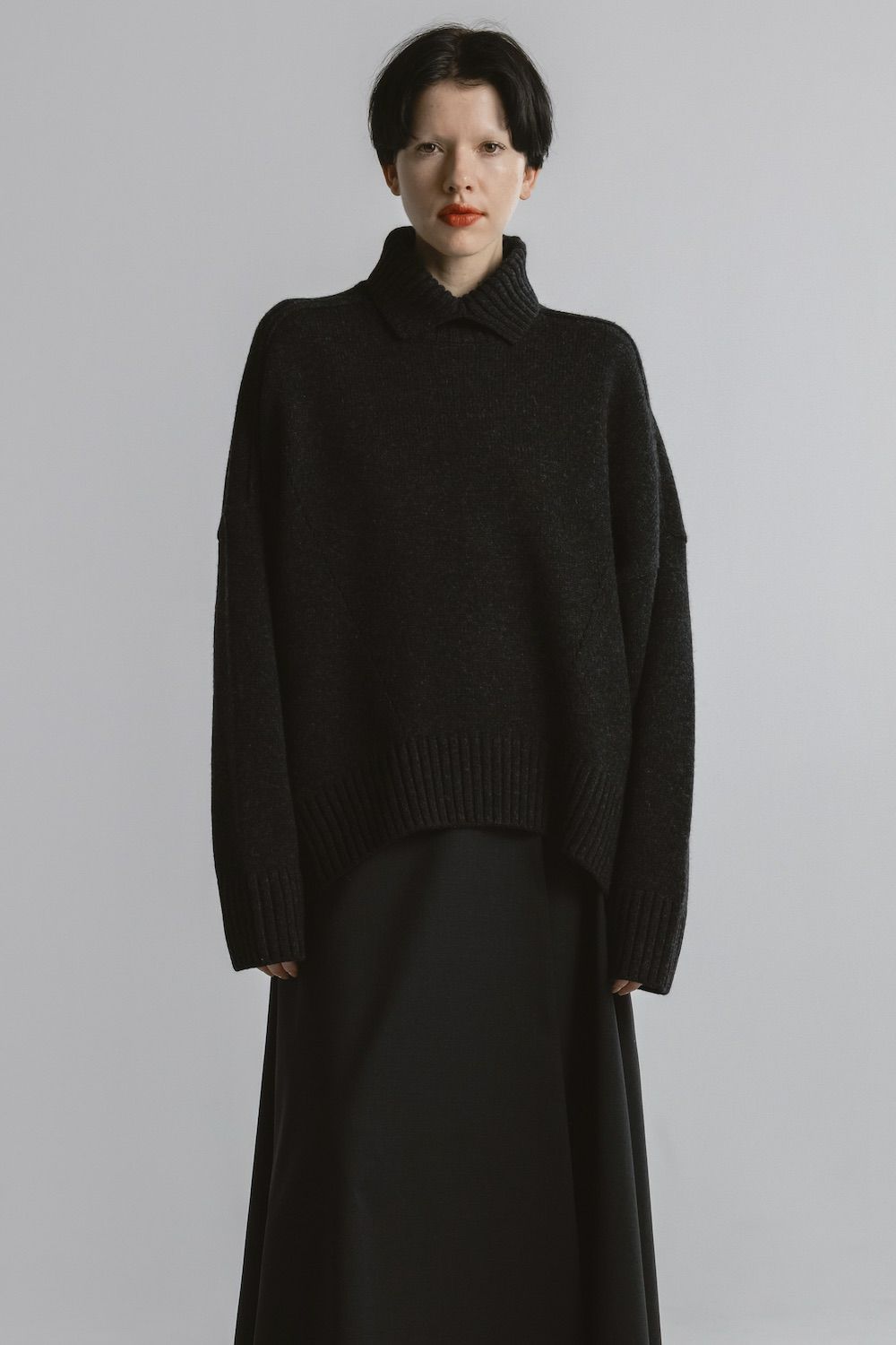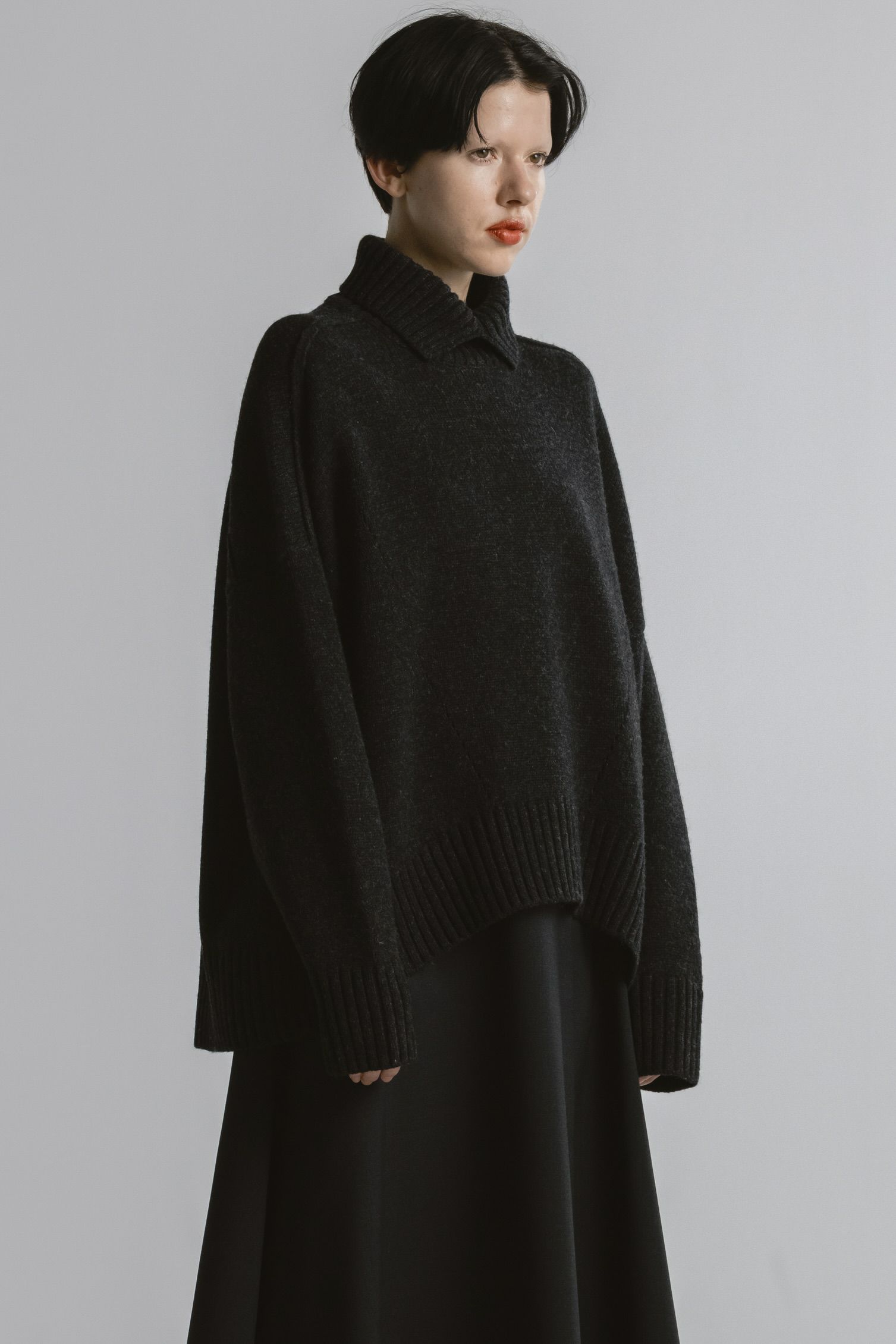 ・ゆったりとしたオーバーサイズのハイネックプルオーバー