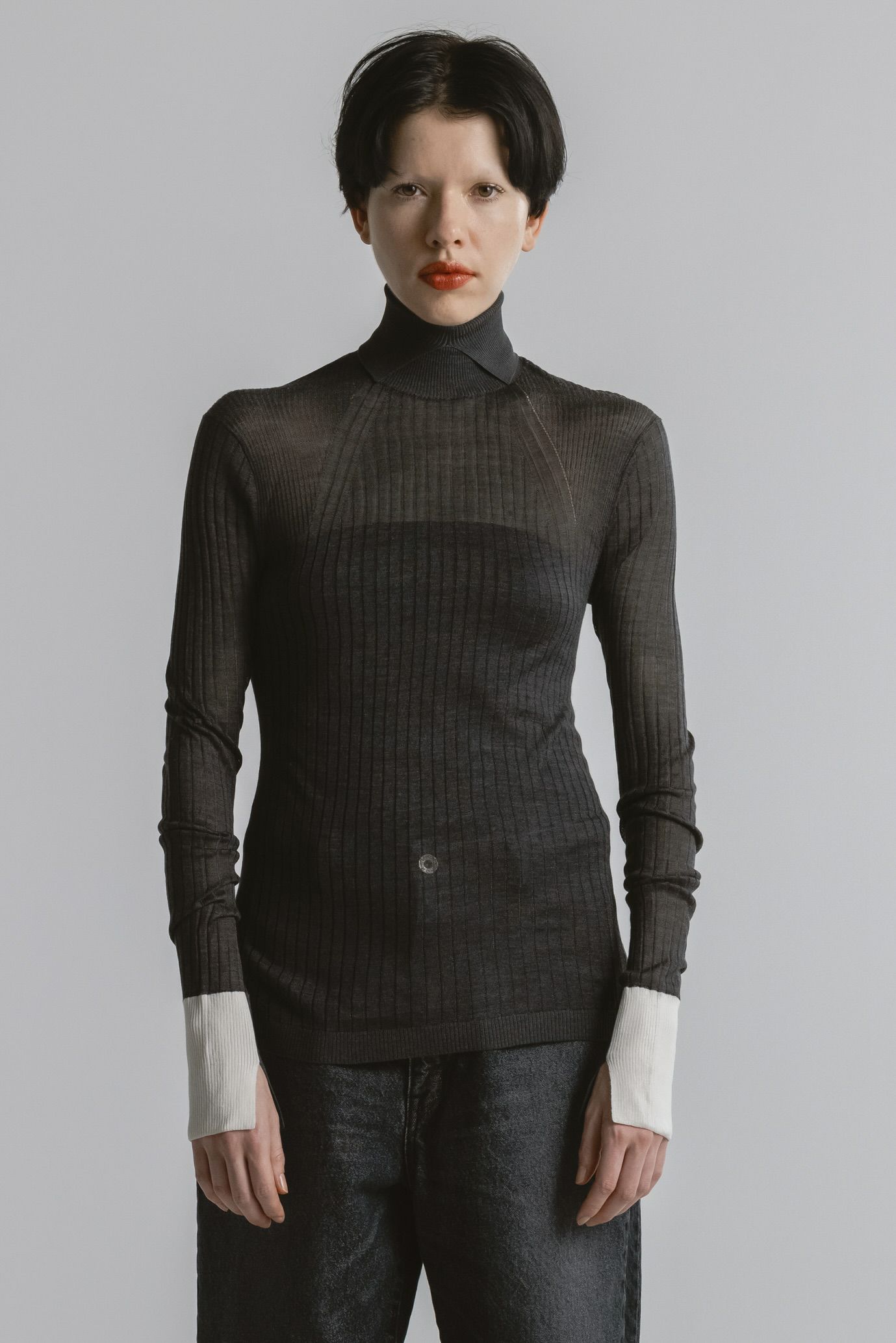- シルクタートルネックタイトニット[C.GRAY/WHITE]