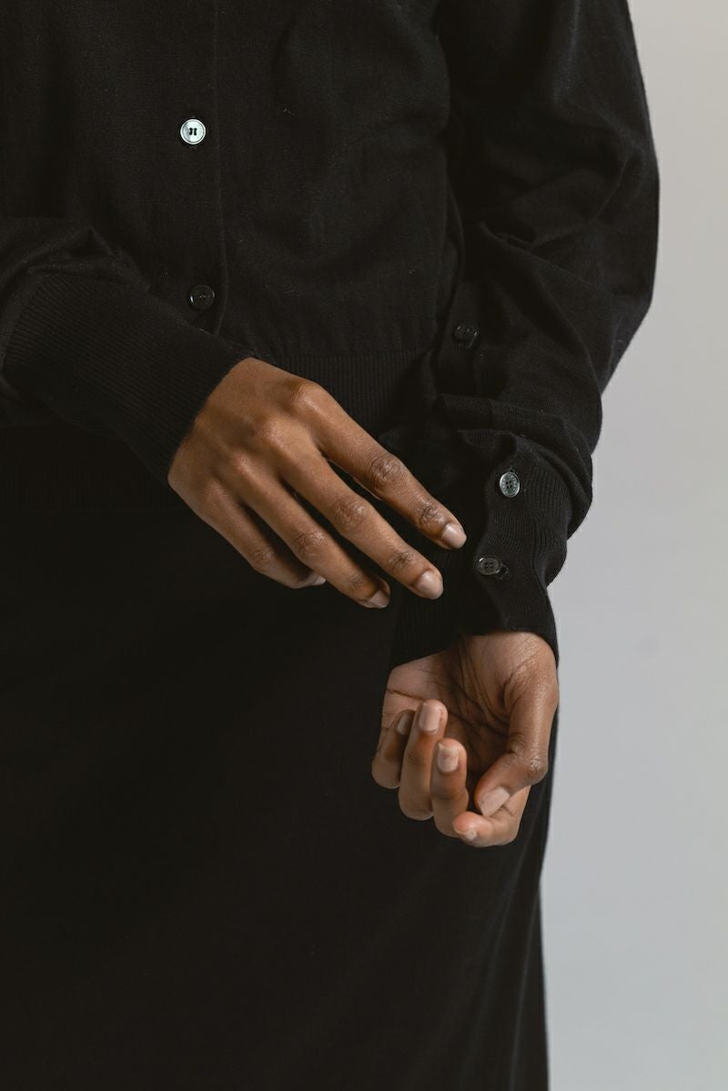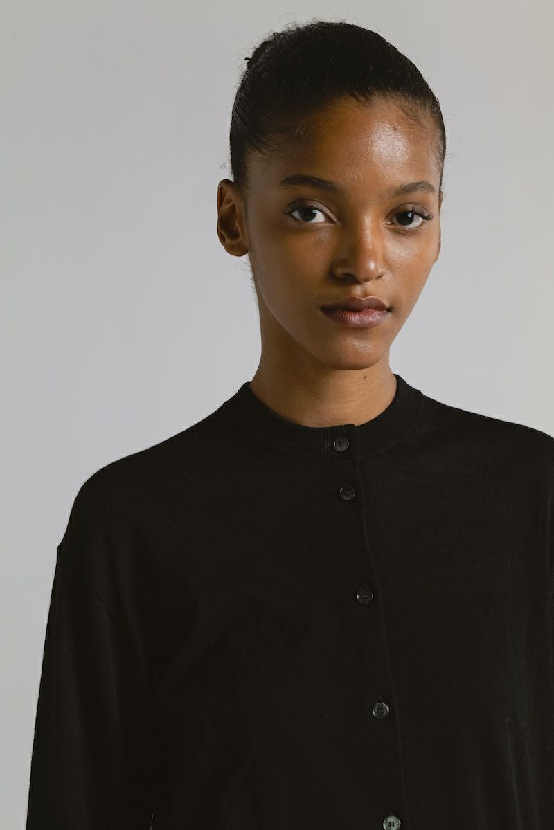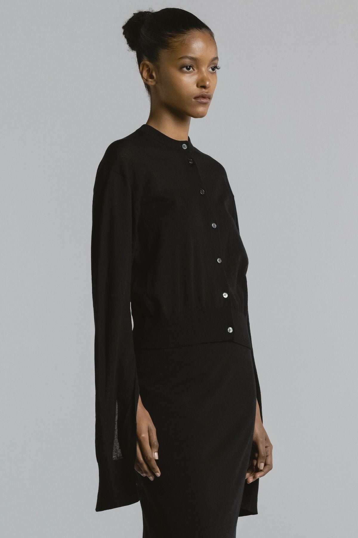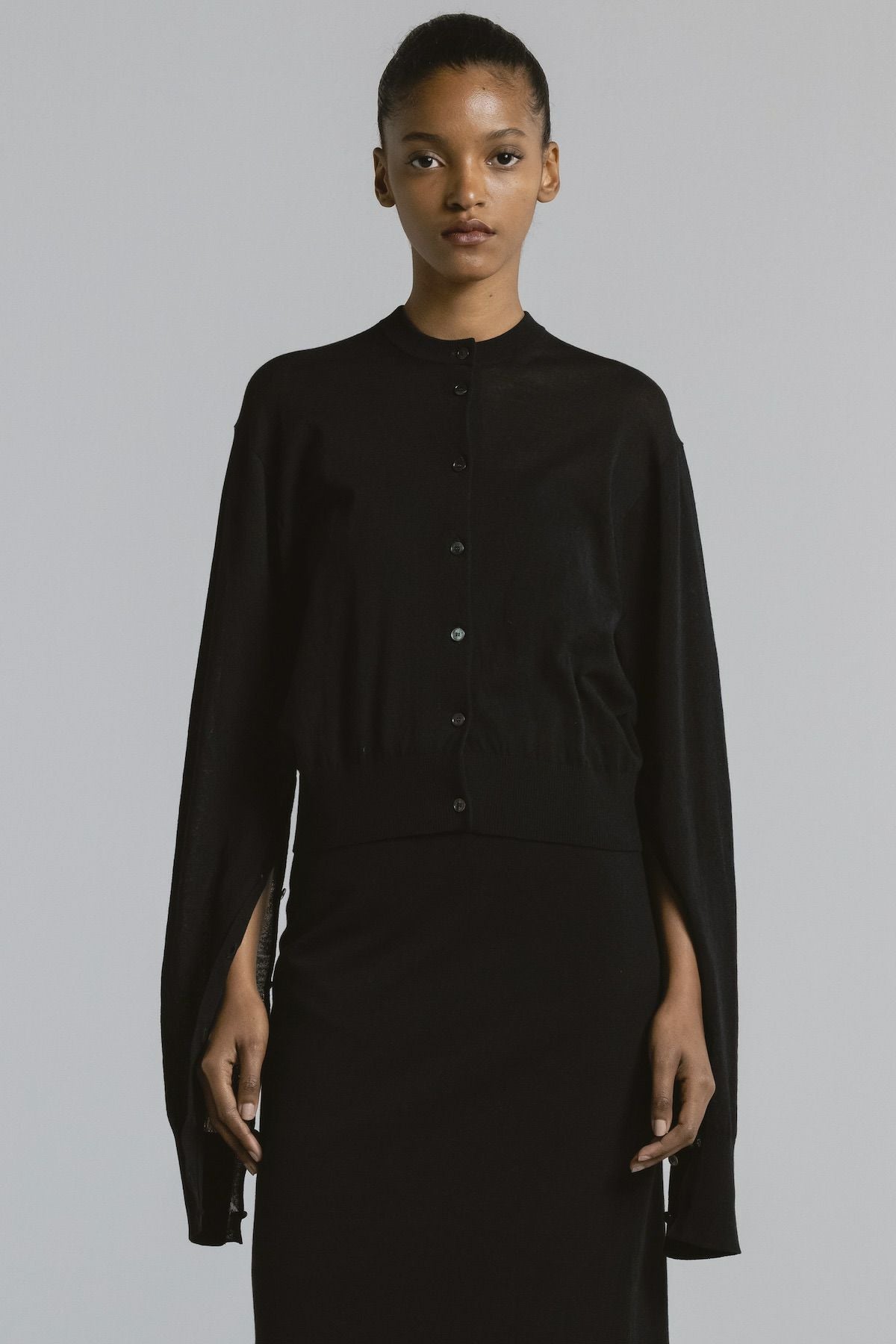 ・袖下にベンツ開きがあり、抜け感のあるロングスリーブカーディガン