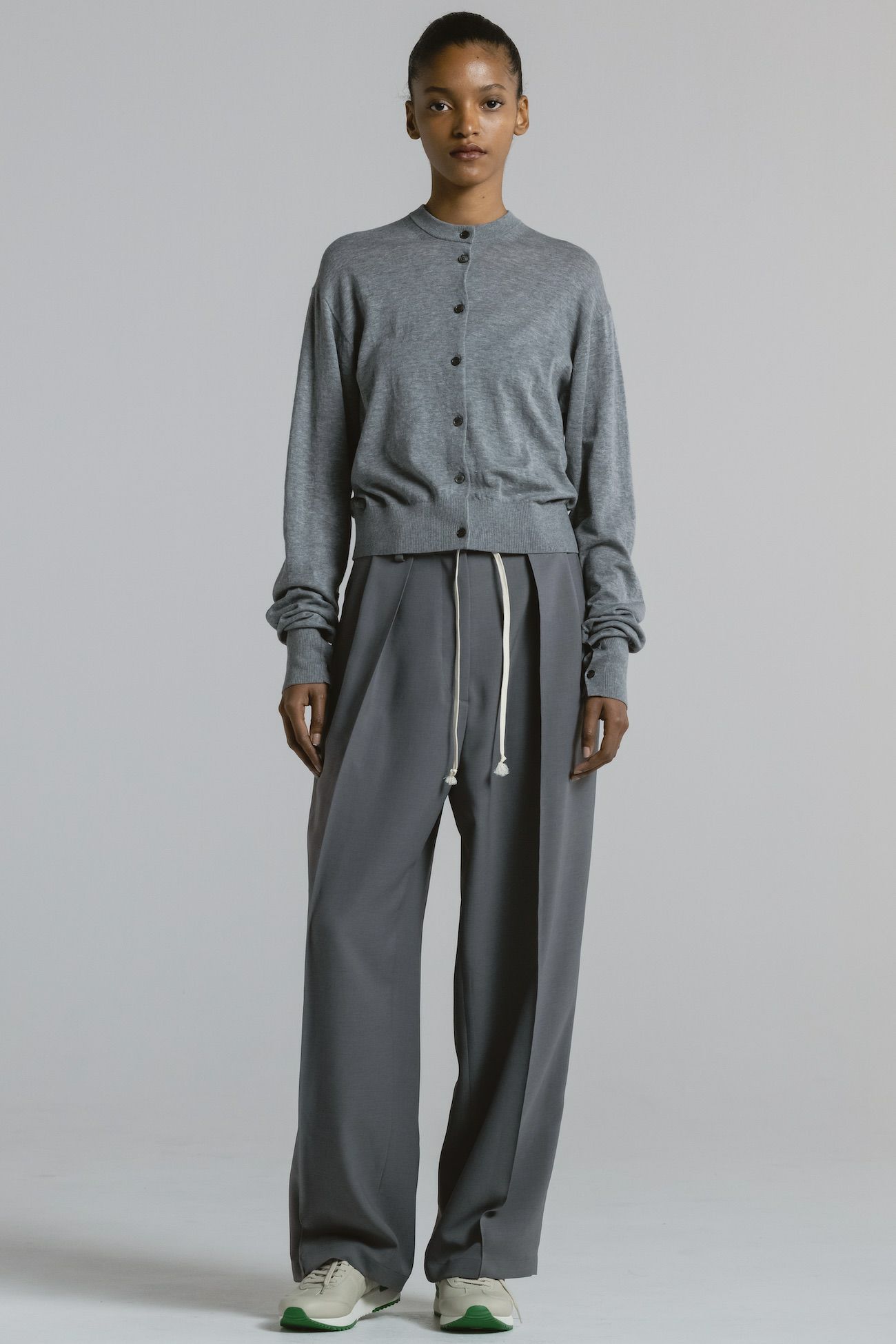 Tシャツをウエストインして、腰あたりで少し落として履くスタイリングを想定し、あえて38サイズを選びました。清涼感とほどよい落ち感のある素材が、自然にシルエットを整えてくれてとてもきれいに見えます。ウエストはドロスト仕様ですが、カジュアルになりすぎず上品に着用できるのもポイント。リラックス感ときちんと感を両立できる、夏にぴったりな一本です。
