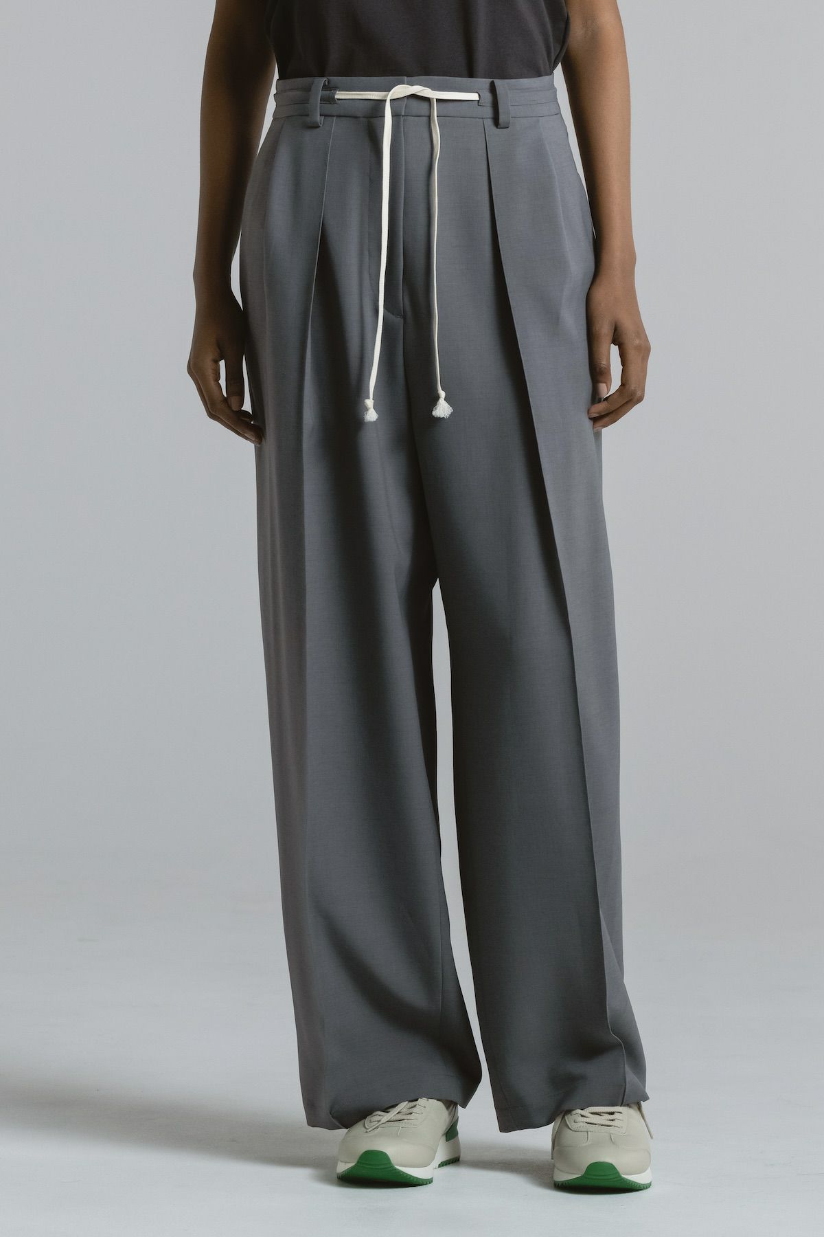 153cm 中肉中背体型です。軽くてシワになりにくい素材で、とても履きやすく、つい手に取ってしまう一本です。前身頃に入ったピンタックが脚をすっきり長く見せてくれ、スタイルアップ効果も◎。ウエストの紐があえて生成りの配色になっているのもポイントで、夏らしく軽やかな印象に仕上がります。初夏から真夏にかけて活躍してくれる、涼しげで快適なパンツです。