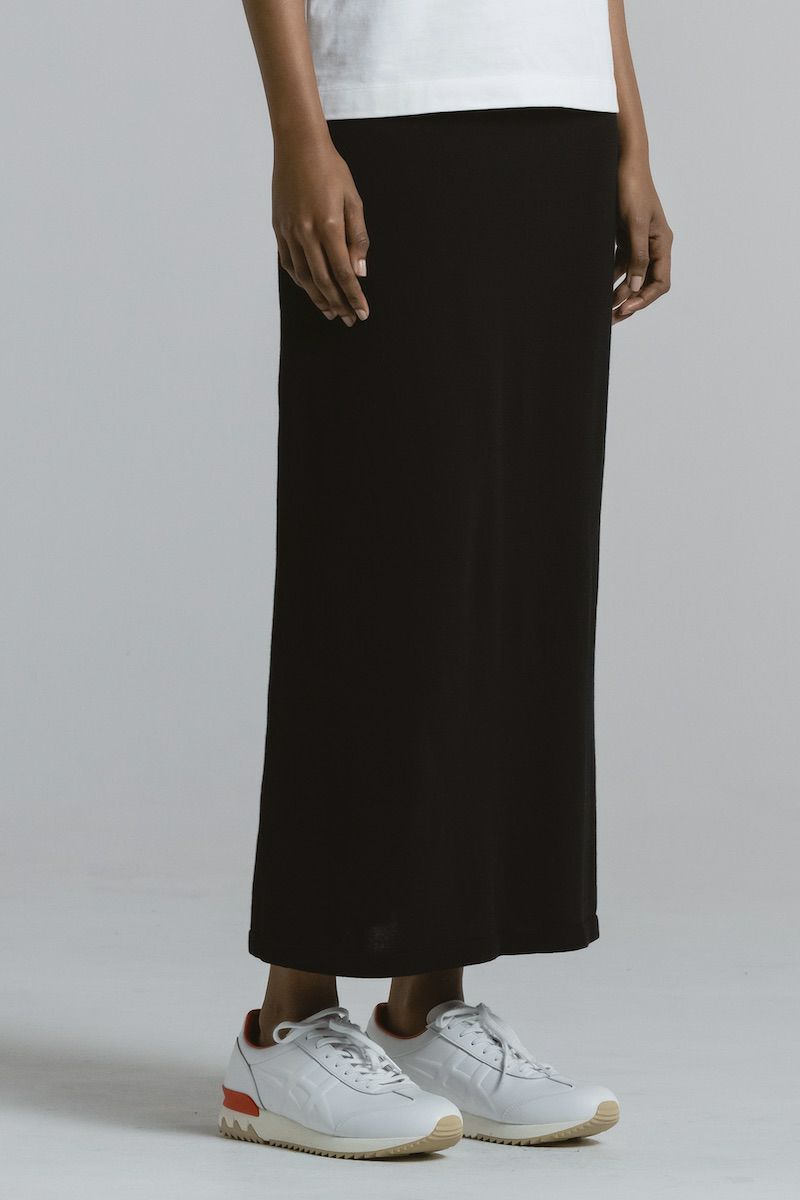 ・フロントはストレートに近く、バックに分量を持たせたロングスカート ・甘さを抑えた、美しく落ちるミニマルなシルエット ・強撚糸を使用することで、肌離れが良く快適な着用感 ・動きやすさと佇まいの美しさを両立した、CINOHらしいバランス