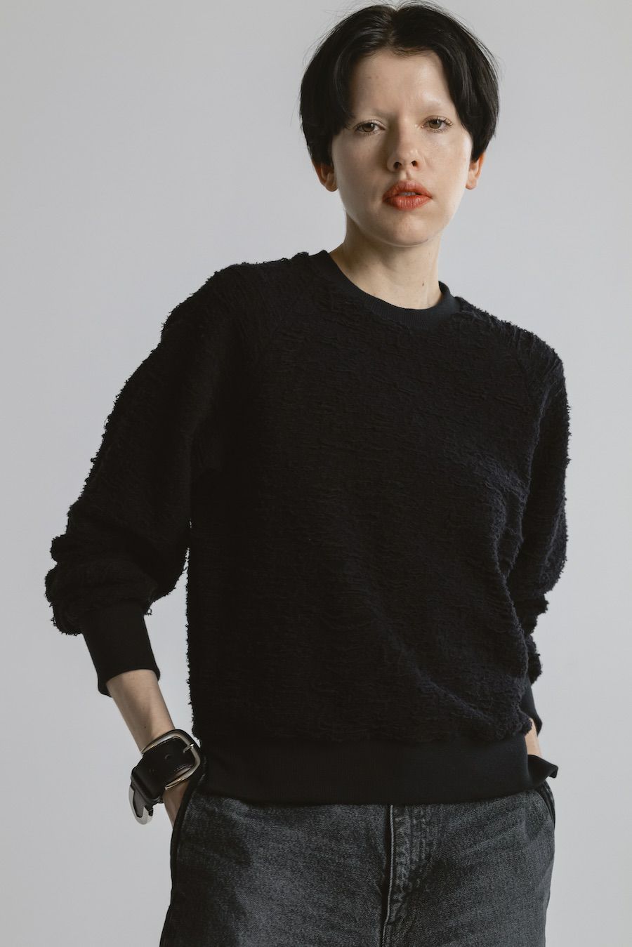 ・ショート丈のミニマルなスウェットプルオーバー