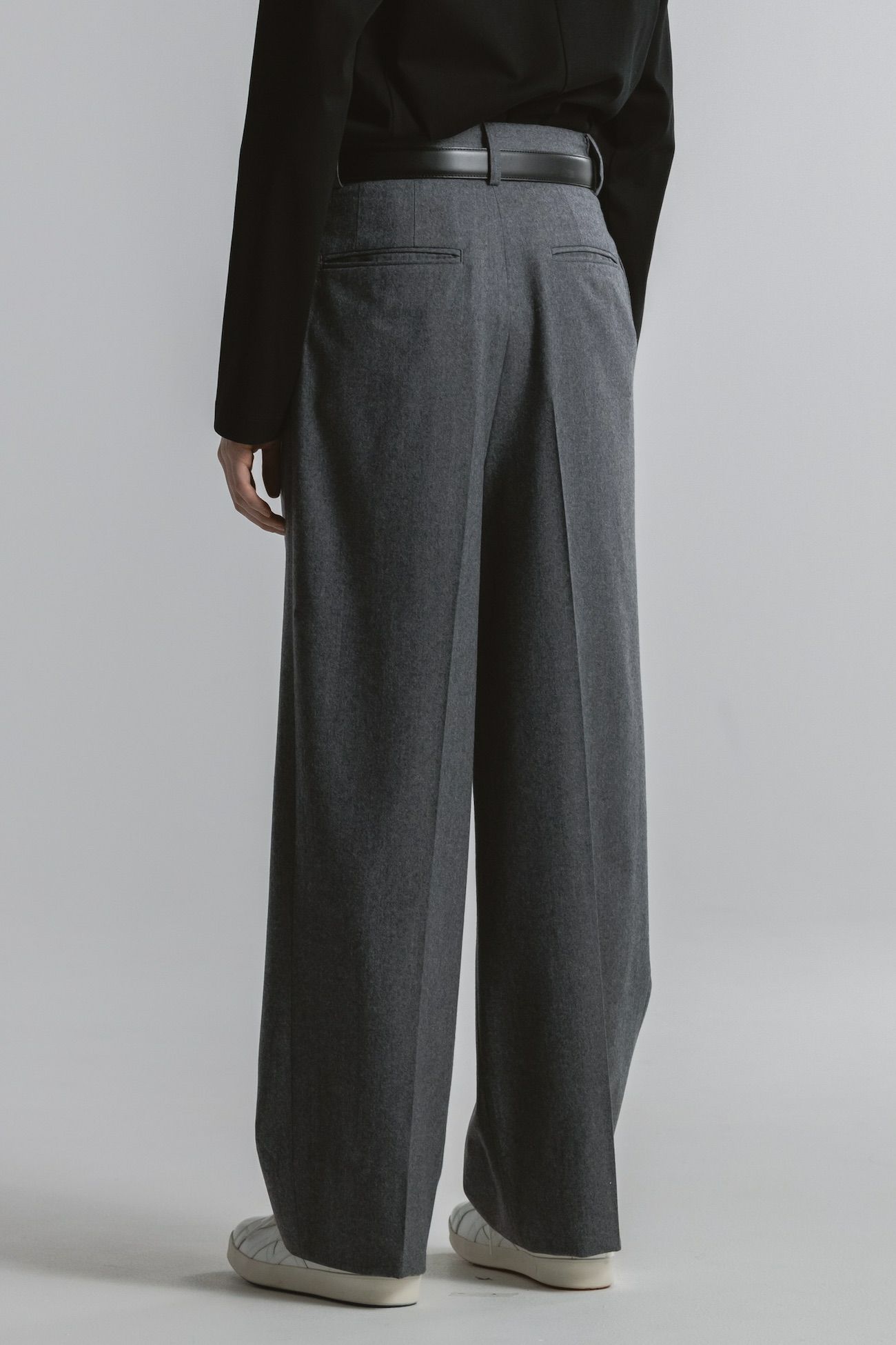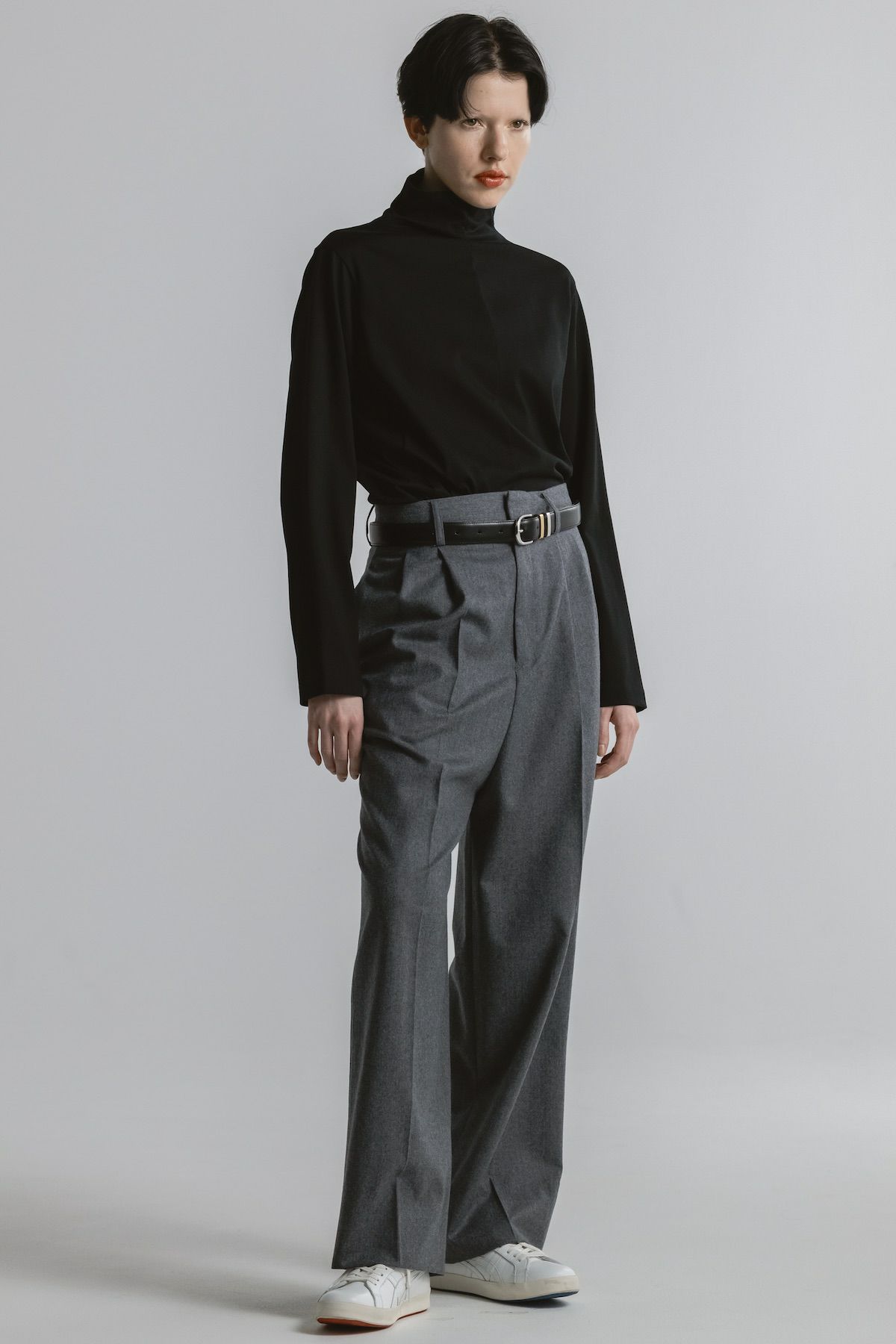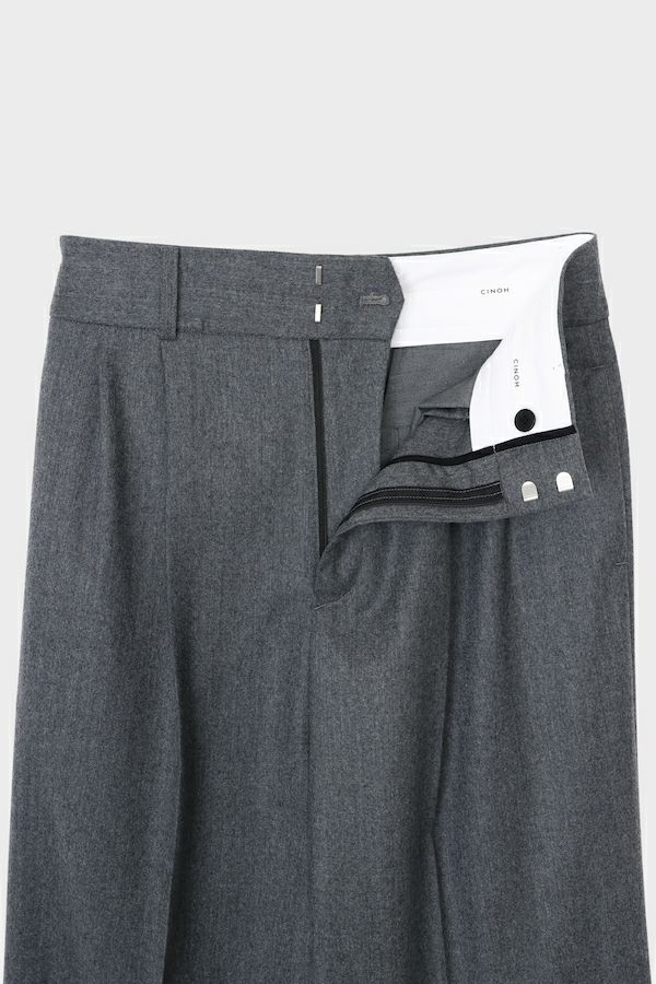 ・深めの股上と2タック仕様で構築した立体的なワイドシルエット