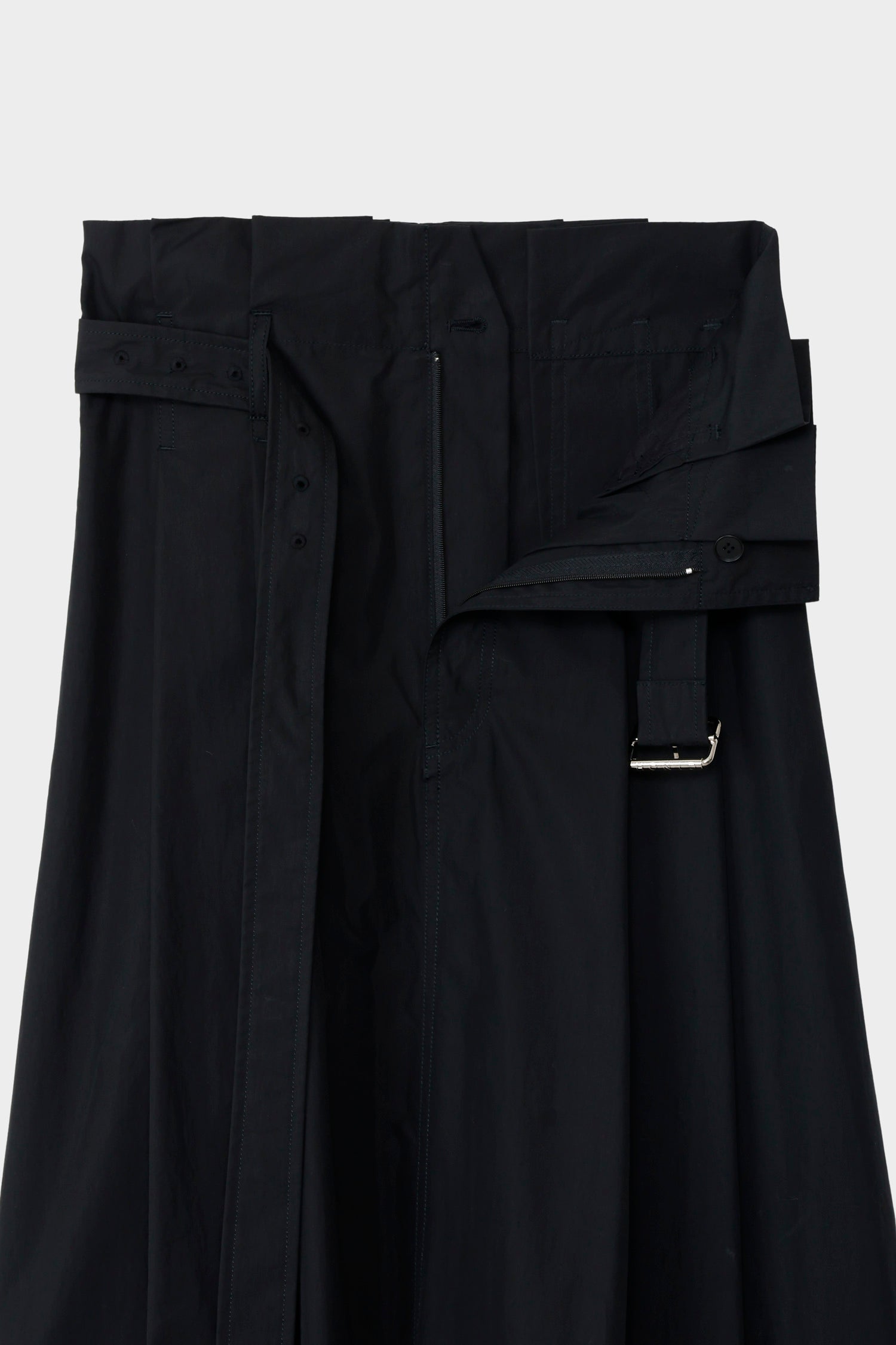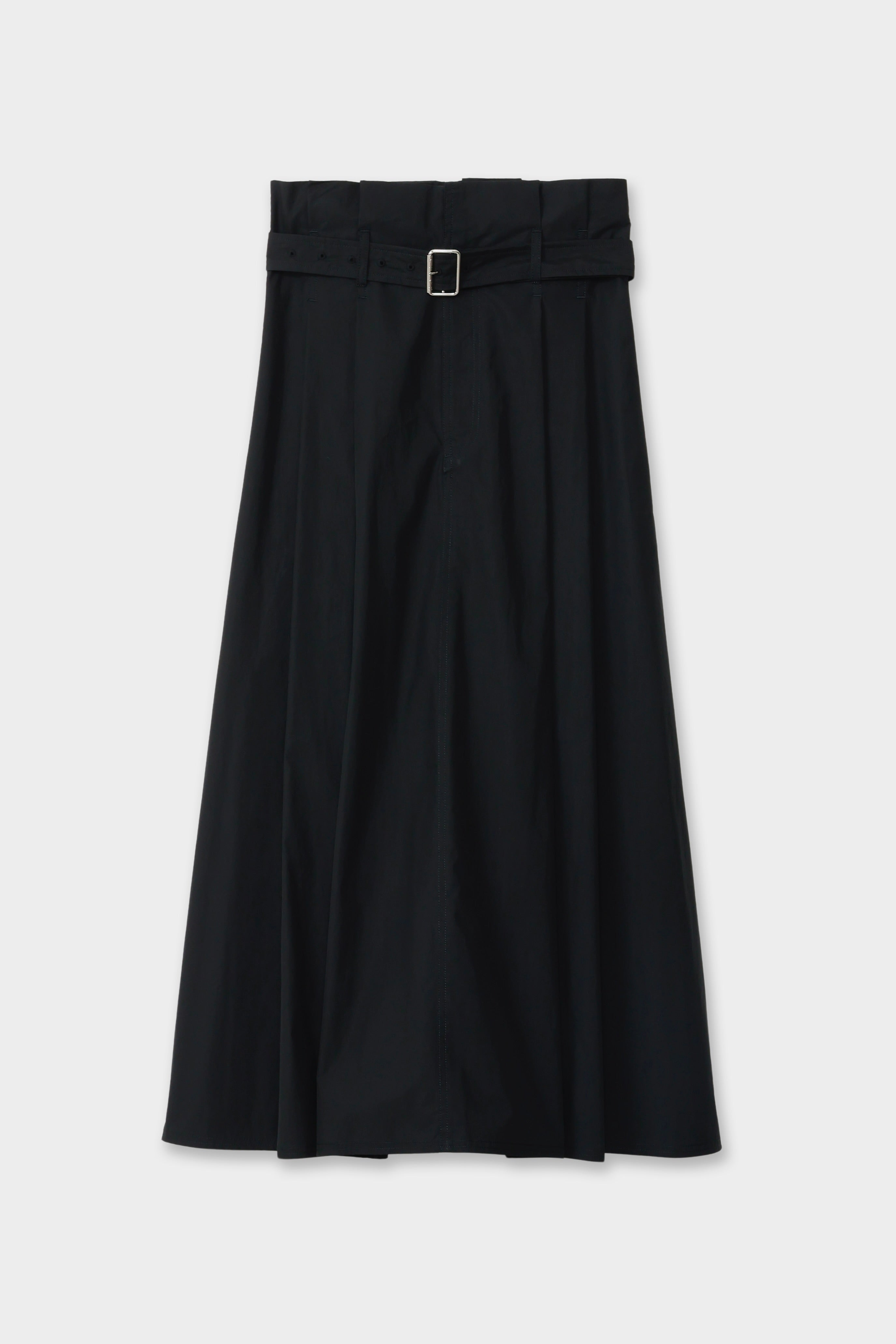 ・タックとベルトが重なり合うディテールが視線を引き寄せる