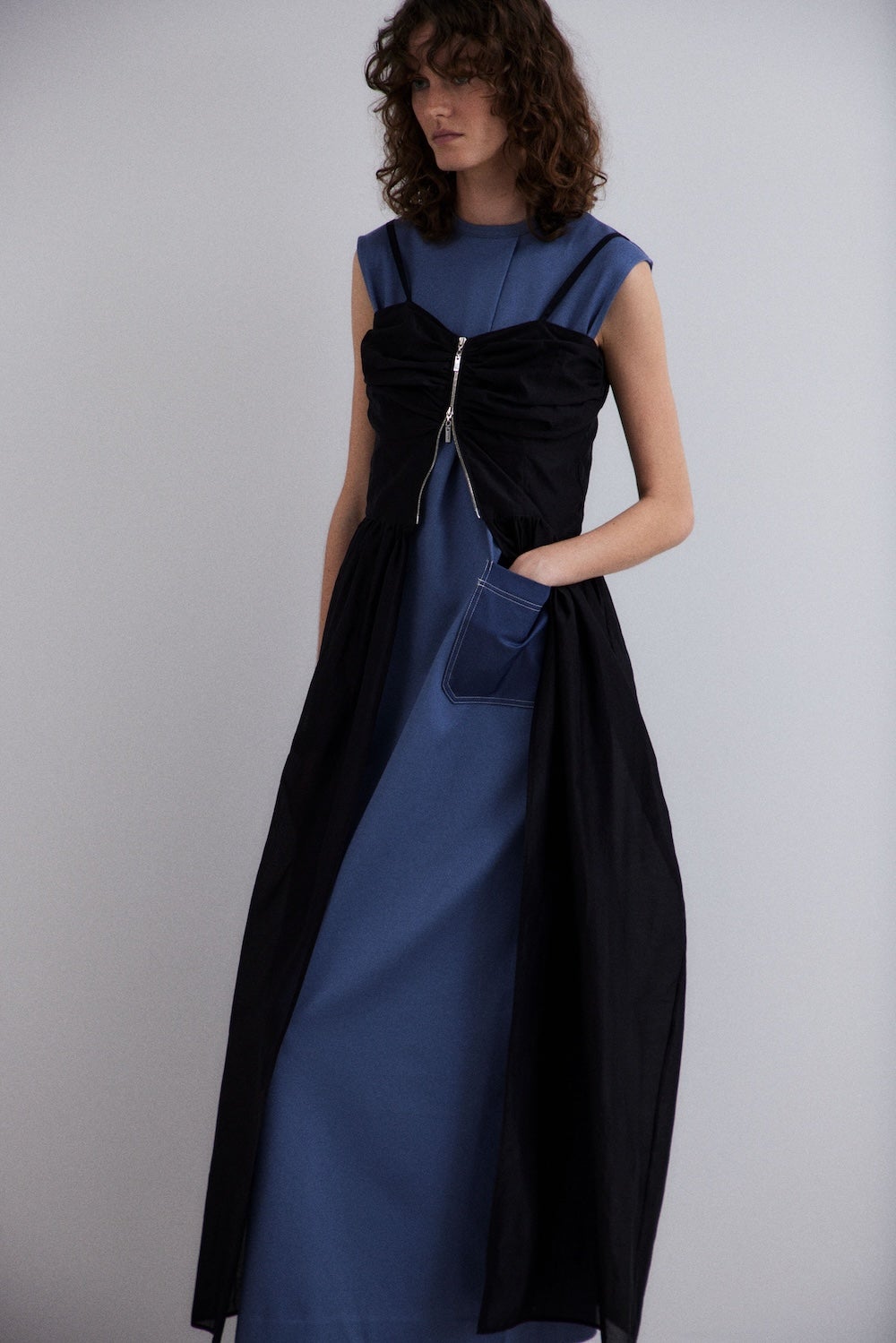 ・バックには深めのベントを入れ、後ろ姿に軽やかな抜け感をプラス