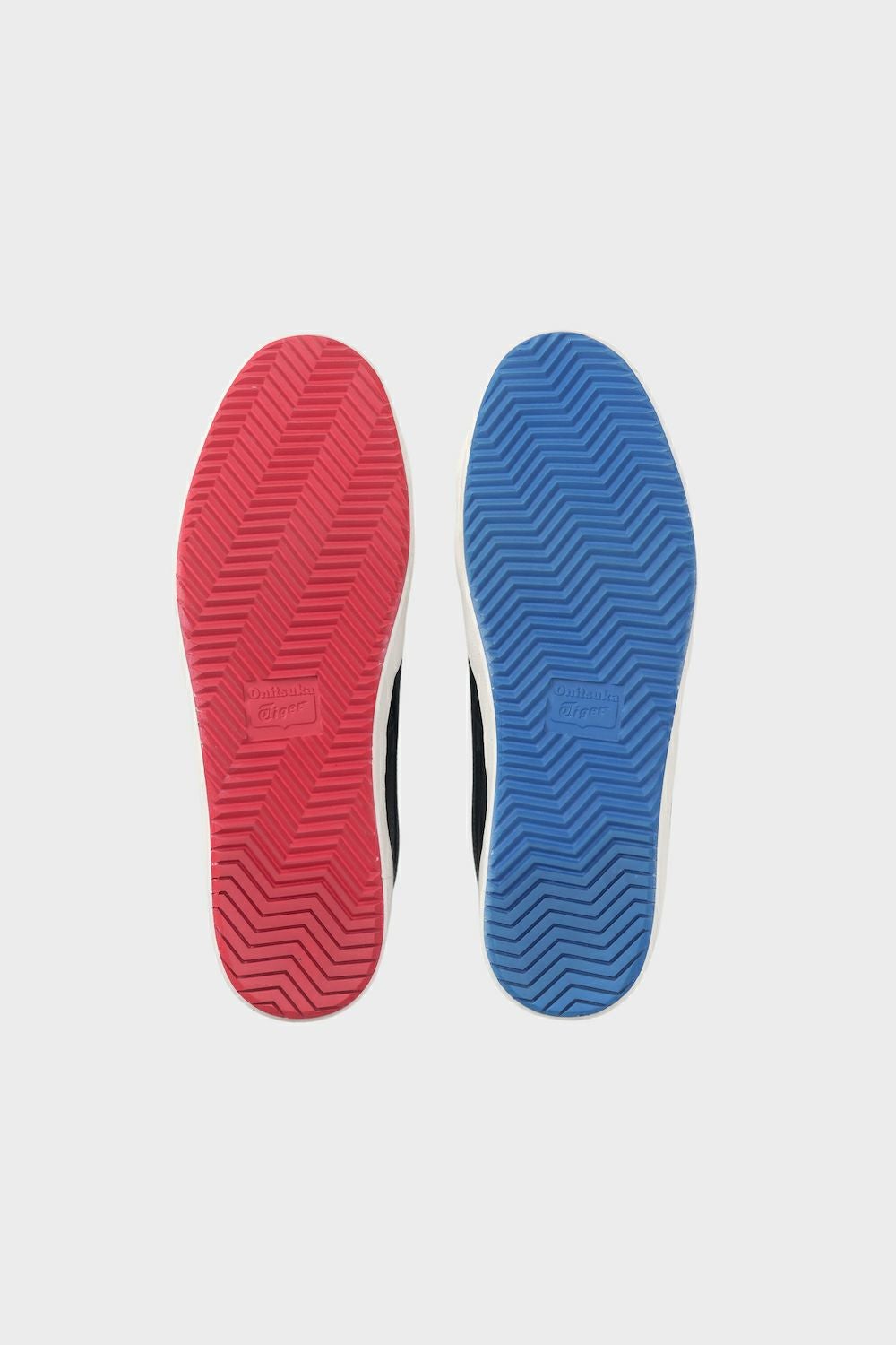 中敷ロゴとアウターソールは第一弾に引き続きOnitsuka Tigerの定番配色であるレッドとブルーを左右で採用。